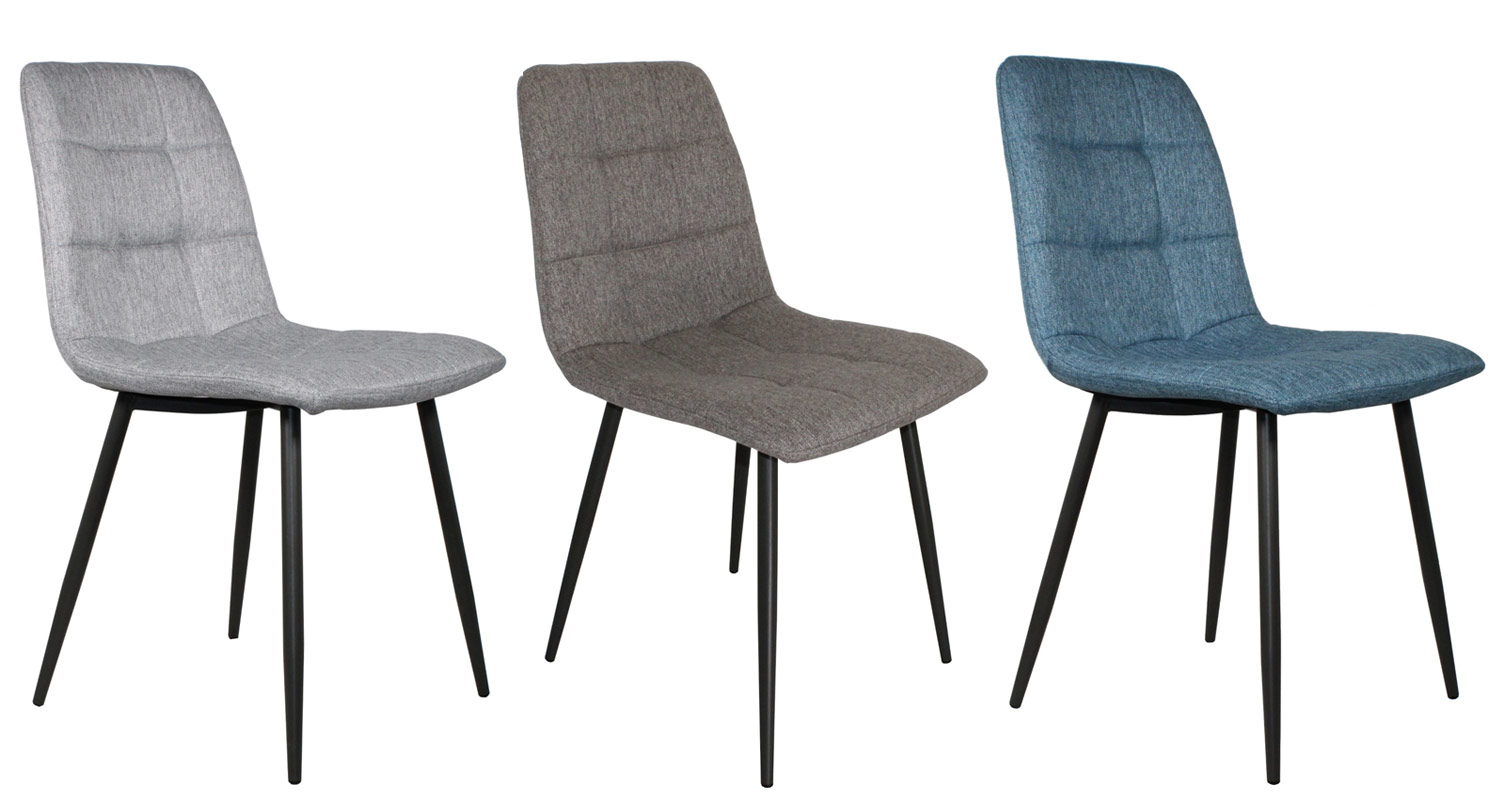 The Orbit dining chair blends modern comfort with timeless simplicity. Featuring a gently curved seat and backrest with soft stitched detail, it offers excellent support for relaxed dining. The slim, tapered black metal legs give a contemporary edge, while the textured fabric upholstery adds warmth and durability. Available in Light Grey, Grey, or Blue, the Orbit chair pairs beautifully with a wide range of dining tables and interiors.