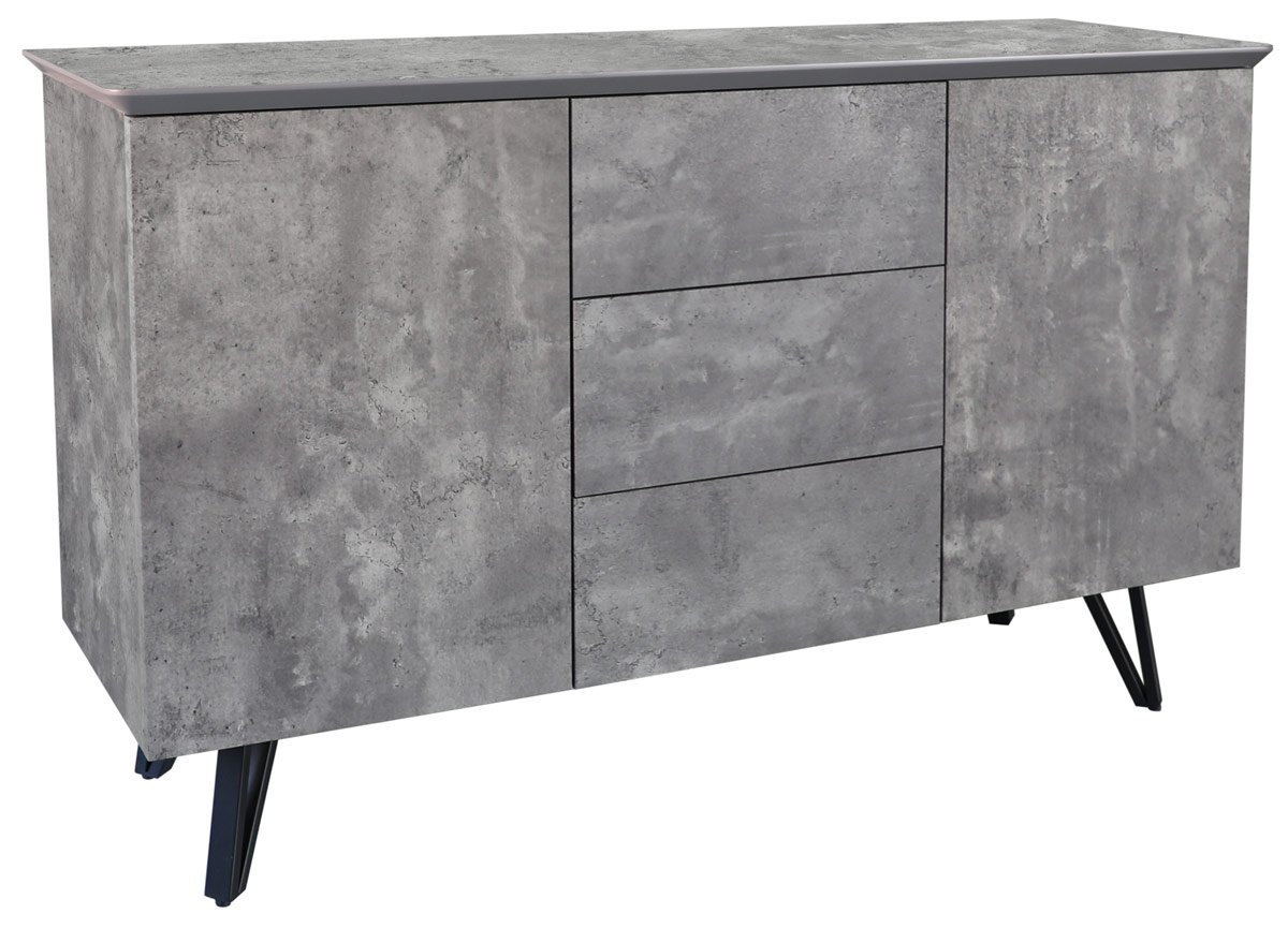 Contemporary and compact, the Tetro range combines sleek design with everyday practicality. Each piece features durable stone-effect HPL tops on MDF, paired with foil-wrapped cabinets and push-to-open drawers and doors for a clean, handle-free look. Sandy black steel legs add a modern industrial edge, making this collection a perfect fit for kitchen, dining, and living spaces alike.